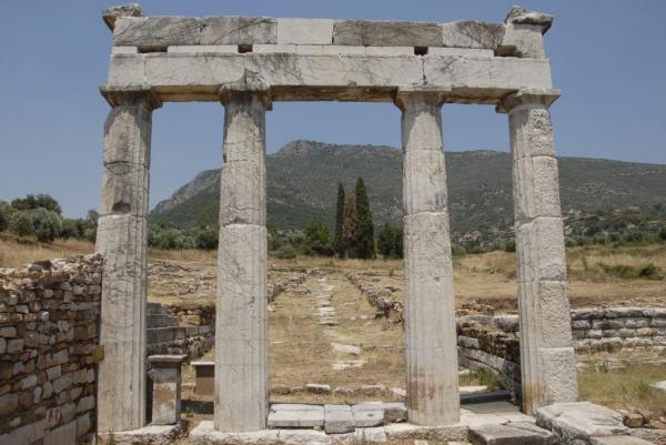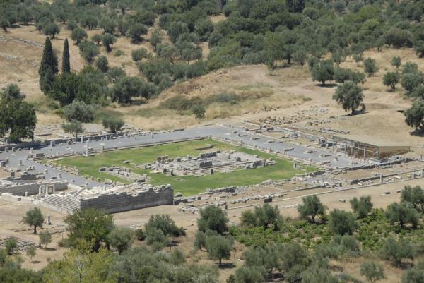 Το ιερό της Μεσσήνης, προδωρικής βασίλισσας των Μεσσηνίων (ο δωρικός ναός χρονολογείται στα τέλη του 4ου αιώνα π.Χ.), στην αγορά. Γύρω του βρέθηκαν τα βάθρα των αγαλμάτων ρωμαίων αυτοκρατόρων.