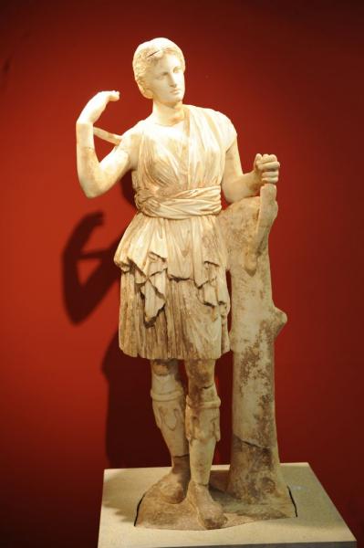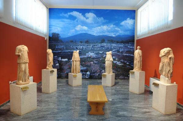 Στα εκτιθέμενα έργα γλυπτικής συγκαταλέγονται ο «Δορυφόρος» του Πολυκλείτου, ο Ερμής της Άνδρου, η Άρτεμις Λαφρία και τα έργα του μεσσήνιου γλύπτη Δαμοφώντα. Στο αίθριο του Μουσείου και στα υπόστεγα εκτίθενται αρχιτεκτονικά μέλη και ενεπίγραφα βάθρα.