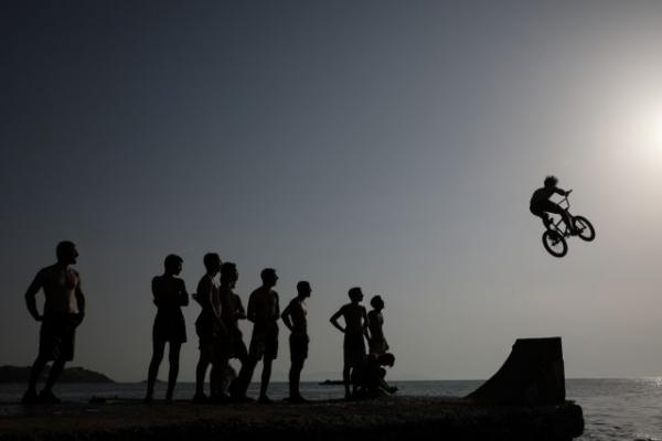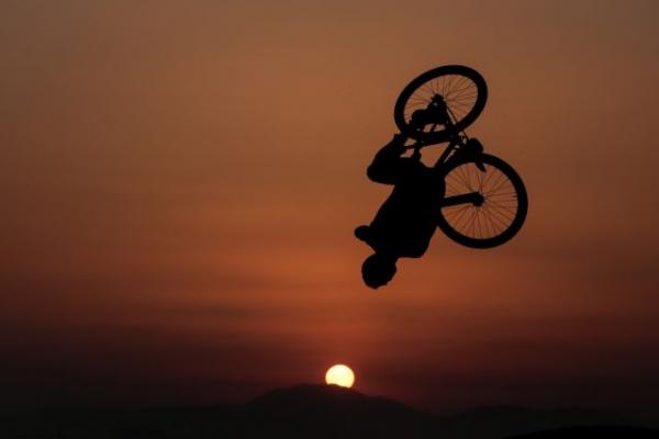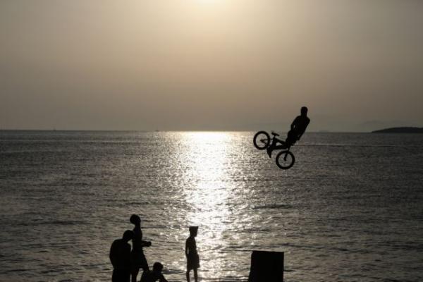Ακροβατικά με θέα το ηλιοβασίλεμα έκαναν οι λάτρεις των ποδηλάτων στο Καβούρι.