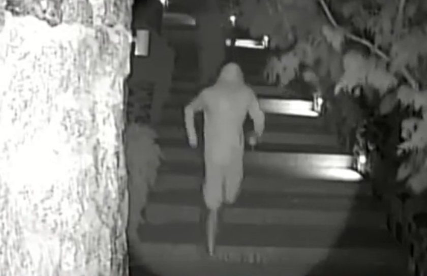 Οι τρεις δράστες, οι δύο εξ΄αυτών φορώντας βερμούδα και έχοντας καλυμμένα τα πρόσωπά τους, φαίνονται στην κάμερα να ανεβαίνουν ανενόχλητοι τα σκαλιά της βίλας, ενώ μάλιστα ο ένας χοροπηδάει προκλητικά μπροστά στον φακό.