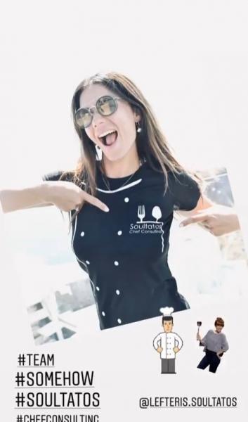 Η ίδια φορώντας τη στολή του συζύγου της, ποζάρει όλο χάρη και μας δείχνει το λογότυπο του ονόματός του.