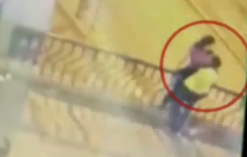 Στο ανατριχιαστικό βίντεο που κατέγραψε κάμερα ασφαλείας το ζευγάρι διακρίνεται να στηρίζεται στο κάγκελο της γέφυρας, ενώ αγκαλιάζεται και φιλιέται.