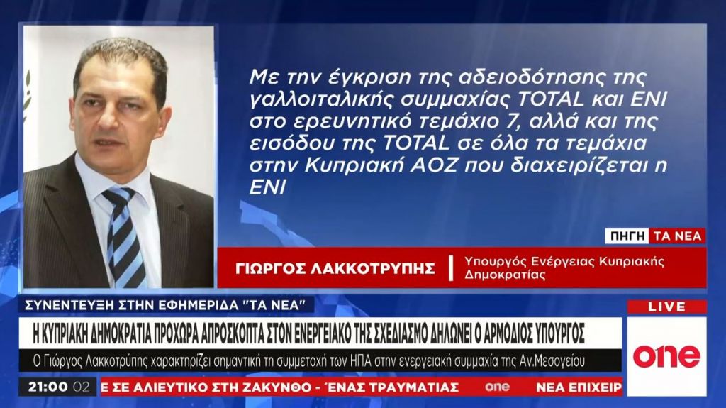 Γ. Λακκοτρύπης στα «Νέα»: Καμία διασύνδεση μεταξύ επίλυσης και εκμετάλλευσης υδρογονανθράκων