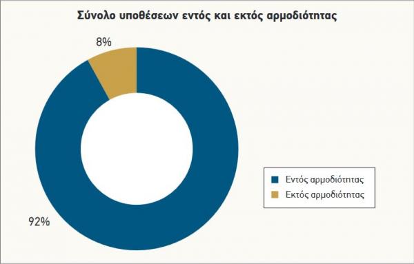 Η συντριπτική πλειοψηφία των εντός αρμοδιότητας υποθέσεων αφορά την ΕΛΑΣ, γεγονός απολύτως αναμενόμενο δεδομένου του όγκου των υποθέσεων που διαβιβάζει η ίδια η ΕΛΑΣ.