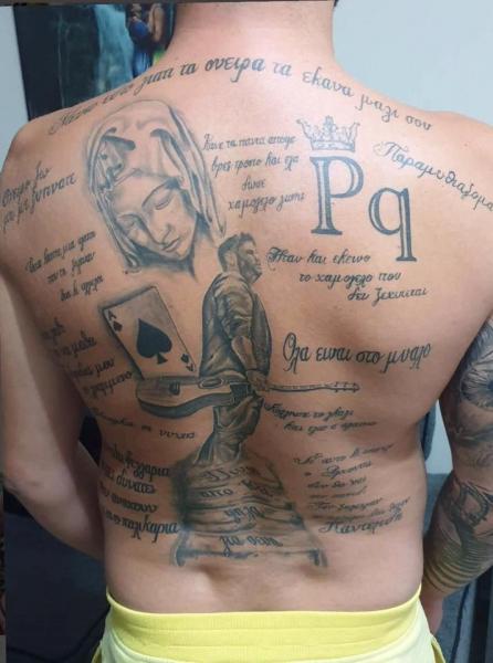 Σε μια εντυπωσιακή φωτογραφία που δημοσίευσε μάλιστα στο Facebook, βλέπουμε πως στην πλάτη του Τριαντάφυλλου Παντελίδη είναι γεμάτη από στίχους τραγουδιών που τραγούδησε ολόκληρη η Ελλάδα καθώς και ένα ακόμα τατουάζ με την μορφή του τραγουδιστή.