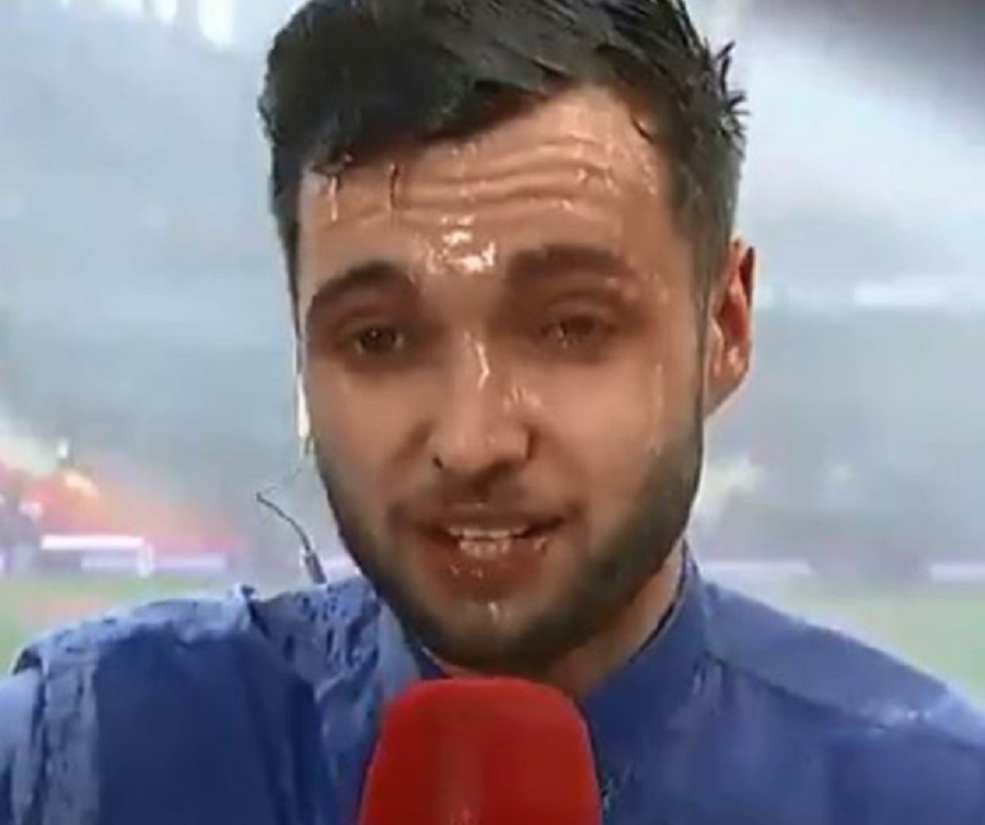 Ένας δημοσιογράφος ενώ εκτελούσε τα καθήκοντά του έγινε… παπί κατά τη διάρκεια μιας ζωντανής μετάδοσης και συνέχισε το ρεπορτάζ του σαν να μην συνέβη κάτι. Ο Evgeniy Evnevich ενημέρωνε τους θεατές όταν ξεκίνησε το αυτόματο πότισμα του αγωνιστικού χώρου.