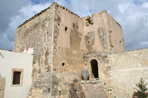 Στη βορειοδυτική γωνία του οχυρωματικού περιβόλου της μονής ορθώνεται ο πύργος του Ξωπατέρα, θρυλικού ηγουμένου, που έχασε τη ζωή του πολεμώντας τους Τούρκους το 1829.