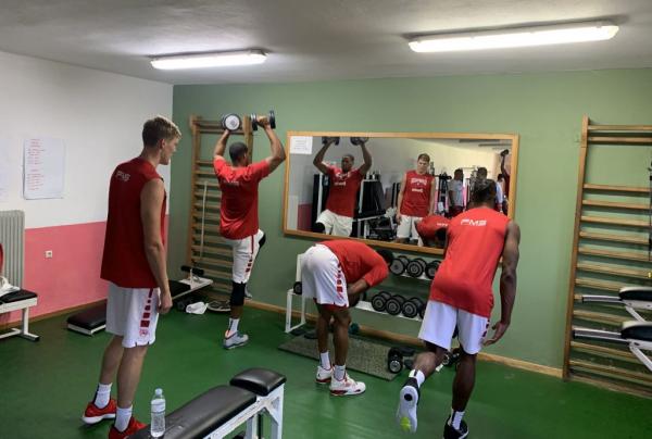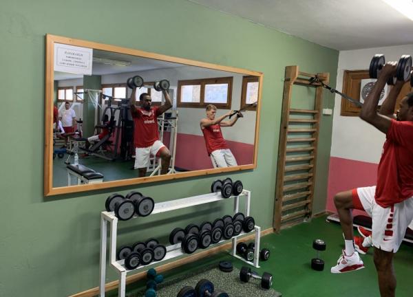Οι Ερυθρόλευκοι πέρασαν το πρωινό τους στο γυμναστήριο και στα βάρη. Ο Ανδρέας Γκατζούλης ήταν αυτός που είχε υπό την εποπτεία του το πρόγραμμα τους και είχε άπαντες στην τσίτα.