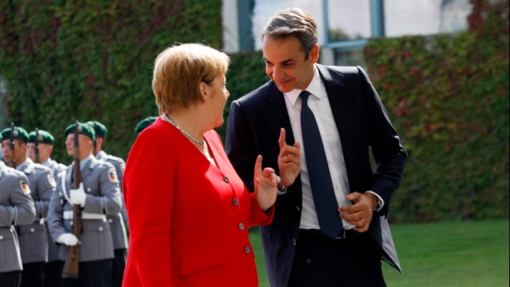 Mε την Άνγκελα Μέρκελ συναντάται αυτή την ώρα ο έλληνας πρωθυπουργός Κυριάκος Μητσοτάκης.