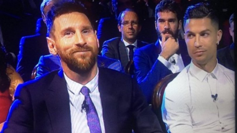 Ο διεθνής Αργεντίνος φορ της Μπαρτσελόνα χαρούμενος για τη βράβευσή του δέχθηκε τα συγχαρητήρια του αμυντικού της Λίβερπουλ Φαν Ντάικ, όχι όμως και του Πορτογάλου σούπερ σταρ.
