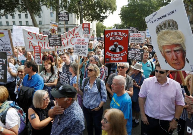 Χιλιάδες άνθρωποι συμμετείχαν το Σάββατο στις δεκάδες διαδηλώσεις που οργανώθηκαν σε όλο το Ηνωμένο Βασίλειο για να καταγγείλουν το «πραξικόπημα» του πρωθυπουργού Μπόρις Τζόνσον, μετά την απόφασή του να αναστείλει τη λειτουργία του κοινοβουλίου για έναν μήνα πριν από το Brexit της 31ης Οκτωβρίου.