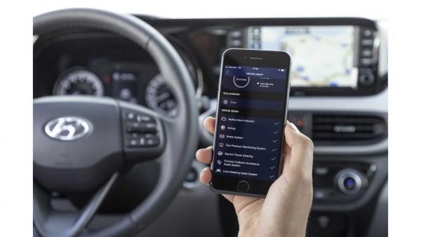 Στο κέντρο του ταμπλό κυριαρχεί μια νέα οθόνη οκτώ ιντσών η οποία φιλοξενεί το infotainment το οποίο με τη σειρά του διαθέτει λειτουργικά Apple CarPlay και Android Auto με ό,τι συνεπάγεται αυτό για τις προδιαγραφές συνδεσιμότητας του i10. Στα εξοπλιστικά του χαρακτηριστικά συμπεριλαμβάνεται σύστημα ασύρματης φόρτισης smartphones ενώ στις διαθέσιμες εφαρμογές περιλαμβάνεται μία νέα η οποία επιτρέπει στον οδηγό να ελέγχει εξ αποστάσεως μέσω του κινητού του, συστήματα όπως ο κλιματισμός.