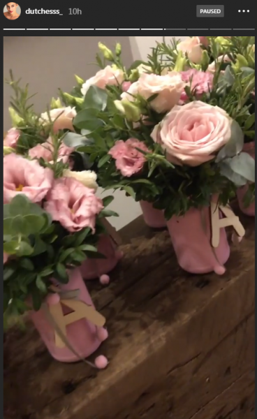 Μέσα στα βίντεο της όμορφης βραδιάς κάτι κέντρισε το ενδιαφέρον μας. Τα λουλούδια είχαν το γράμμα «Α» στην άκρη, κάτι που μάλλον προδίδει πως το νέο μέλος της οικογένειας θα έχει ένα όνομα που ξεκινάει με το πρώτο γράμμα της αλφαβήτου.