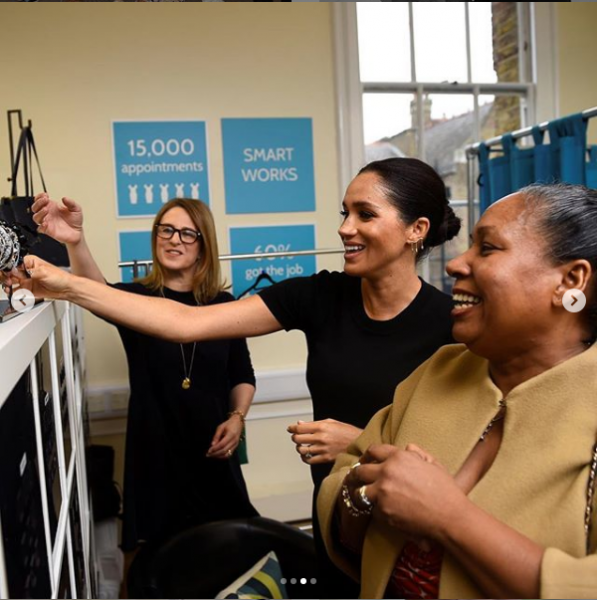 «Όταν μπαίνεις στον χώρο του Smart Works, συναντάς στα ράφια ρούχα και μια σειρά από τσάντες και παπούτσια. Μερικές φορές όμως μπορεί να είναι ένα ποτ πουρί πραγμάτων που δεν ταιριάζουν τα μεγέθη και τα χρώματα, και δεν είναι πάντοτε η σωστή στιλιστική επιλογή. Για να βοηθήσω σ’ αυτό, ρώτησα την Marks & Spencer, την John Lewis & Partners και την φίλη μου σχεδιάστρια Misha Nonoo, αν ήταν πρόθυμοι να σχεδιάσουν μια συλλογή κάψουλα με περισσότερες κλασικές επιλογές για μια συλλογή ρούχων εργασίας», έγραψε η Μέγκαν.