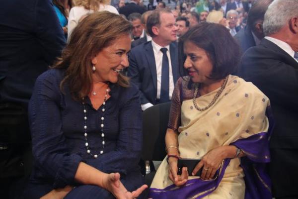 Η ατμόσφαιρα ήταν ευχάριστη και τα χαμόγελα, οι χειραψίες και τα πηγαδάκια περίσσεψαν το βράδυ του Σαββάτου στο Βελλίδειο κατά την διάρκεια της πρώτη ομιλίας του Κυριάκου Μητσοτάκη ως πρωθυπουργός στην ΔΕΘ.