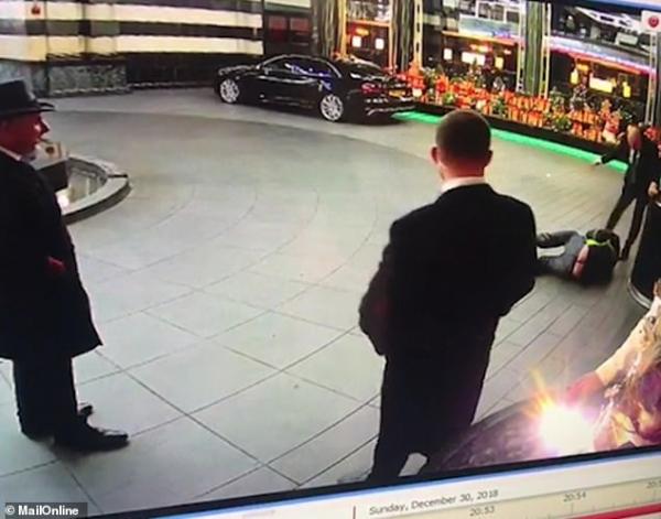 Το περιστατικό συνέβη στις 30 Δεκεμβρίου και η εκπρόσωπος Τύπου του ξενοδοχείου ανακοίνωσε την Παρασκευή ότι ξεκινά έρευνα για το συμβάν. Τόνισε δε, ότι ο εικονιζόμενος άντρας δεν ανήκει στους υπαλλήλους σεκιούριτι του ξενοδοχείου και ότι άνηκε σε μία άλλη εταιρεία που συνεργαζόταν μαζί τους.