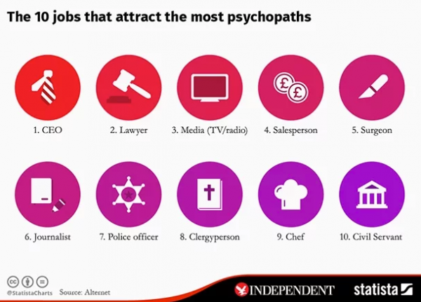 Ποια επαγγέλματα προσελκύουν περισσότερο τους ψυχοπαθείς