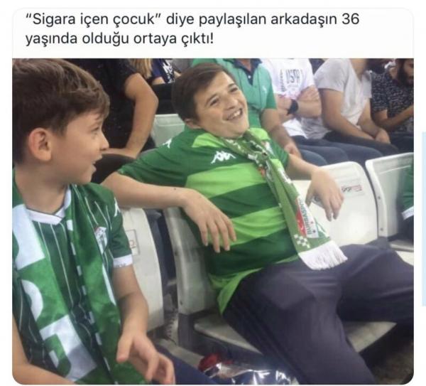Ο συγκεκριμένος καθόταν στην κερκίδα των οπαδών της Μπούρσασπορ (έπαιζε με την Φενέρμπαχτσέ), ενώ οι περισσότεροι χρήστες σχολίασαν αρνητικά το γεγονός οτι κάπνιζε σε αυτή την ηλικία. Ωστόσο τελικά τα πράγματα δεν είναι όπως φαίνονται.
