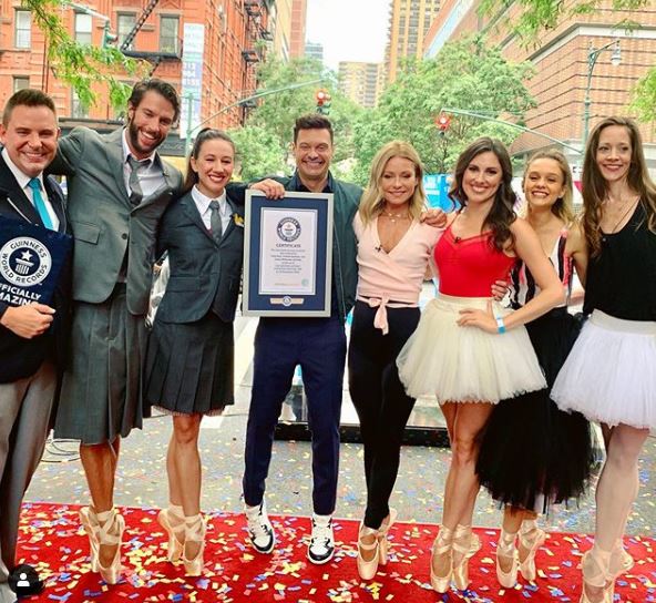 Η Αμερικανίδα τηλεοπτική παρουσιάστρια Κέλι Ρίπα, γνωστή από το talk show “Live With Kelly And Ryan” έδειξε τις ικανότητες της στο μπαλέτο και στην τεχνική en pointe και κατέρριψε παγκόσμιο ρεκόρ Γκίνες.
