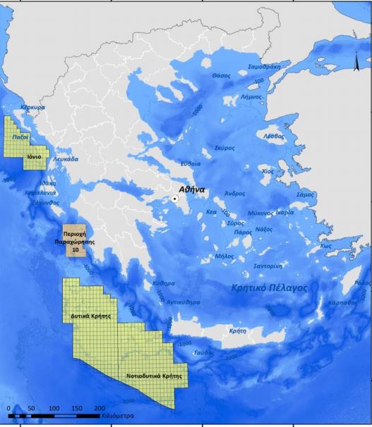-για τις δυο θαλάσσιες περιοχές «Νοτιοδυτικά Κρήτης» και «Δυτικά Κρήτης» εισάγονται προς κύρωση οι δυο συμβάσεις που υπεγράφησαν στις 27 Ιουνίου 2019 μεταξύ του Ελληνικού Δημοσίου και της κοινοπραξίας Total, ExxonMobil και Ελληνικών Πετρελαίων.
