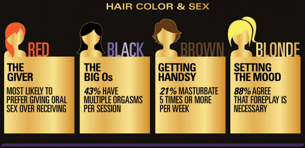 Σύμφωνα με την έρευνα, το 43% των ερωτηθέντων με μαύρα μαλλιά, έχουν πολλαπλούς οργασμούς ανά σεξουαλική πράξη.