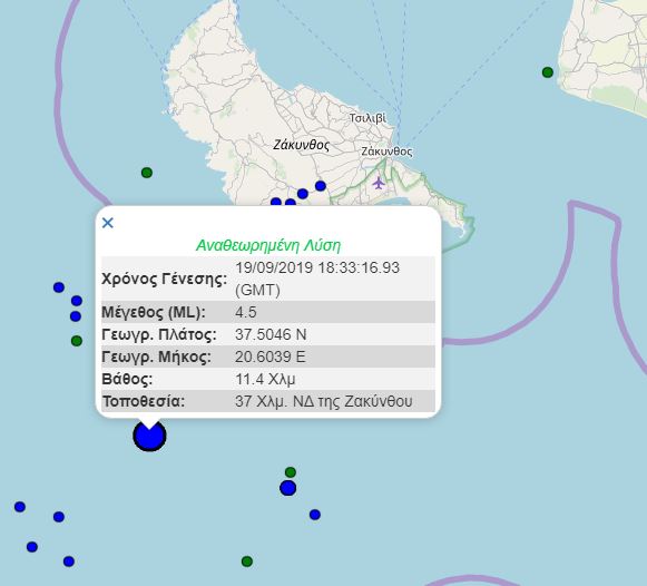 Ισχυρός σεισμός σημειώθηκε πριν λίγα λεπτά ανοιχτά της Ζακύνθου