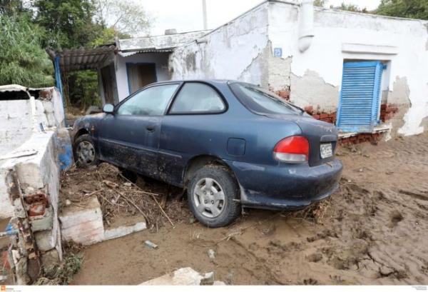 Οι φωτογραφίες αποδεικνύουν το μέγεθος της καταστροφής, καθώς ΙΧ έχουν παρασυρθεί και έχουν σταματήσει στις αυλές των σπιτιών, ενώ αυλές σπιτιών έχουν χαθεί από την λάσπη και τα φερτά υλικά.