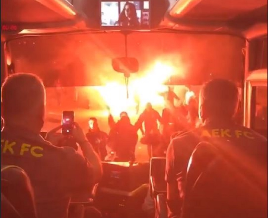 Περίπου 200 οπαδοί της ΑΕΚ έστησαν «μπλόκο» στην αποστολή της Ένωσης στο Ρίο-Αντίρριο και αποθέωσαν τους παίκτες.