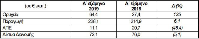 Οι συνολικές επενδύσεις το α΄ εξάμηνο 2019 ανήλθαν σε € 378 εκατ. έναντι € 340,6 εκατ. το α΄ εξάμηνο 2018.