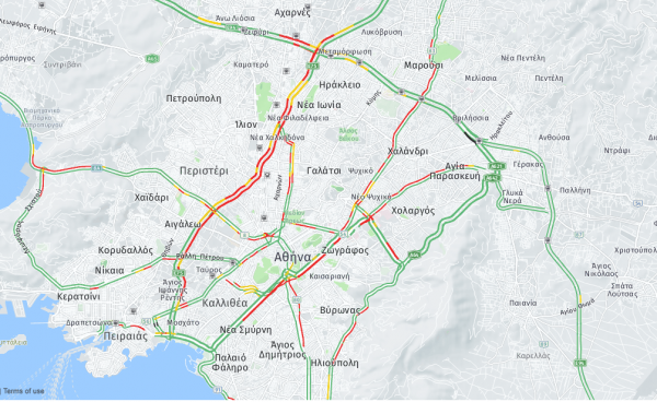 Με δυσκολία διεξάγεται η κίνηση από την Θηβών έως και τον Κηφισό προς την Αθήνα ενώ πρόβλημα εντοπίζεται και στην άνοδο της Λεωφόρου Αλεξάνδρας.