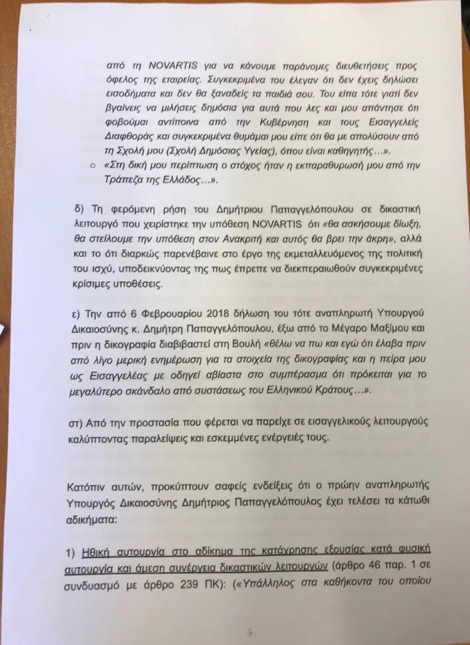 Κατατέθηκε στη Βουλή η πρόταση 30 βουλευτών της ΝΔ για τη σύσταση ειδικής κοινοβουλευτικής επιτροπής προς διενέργεια προκαταρκτικής εξέτασης κατά του πρώην αναπληρωτή υπουργού Δικαιοσύνης, Δημήτρη Παπαγγελόπουλου για την υπόθεση Novartis.