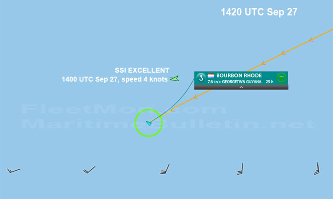 Το Bourbon Rhode με σημαία Λουξεμβούργου βρισκόταν την Πέμπτη σε απόσταση 1.200 ναυτικών μιλίων (2.222 χλμ.) από το γαλλικό νησί της Μαρτινίκα και 60 μιλίων (111 χλμ.) νότια-νοτιοδυτικά από το μάτι του κυκλώνα Λορέντζο, σύμφωνα με την ιδιοκτήτρια εταιρία Bourbon, γαλλικό όμιλο υπηρεσιών θαλάσσιων μεταφορών για την πετρελαϊκή βιομηχανία.