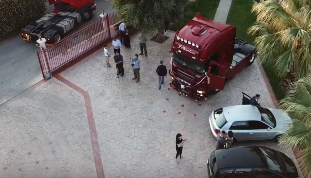 Ο γαμπρός κατέφθασε στην εκκλησία πανηγυρικά και με πολλές νταλίκες να κορνάρουν!