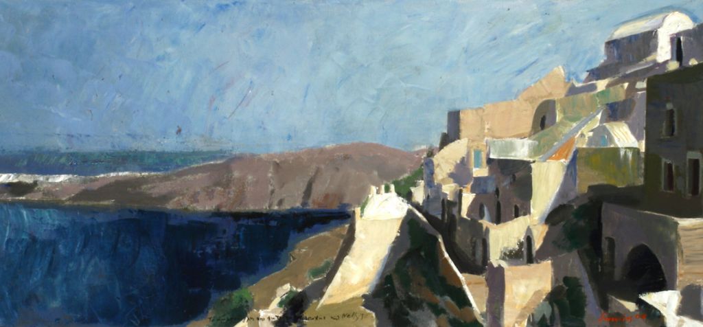 Μια επιλογή από 84 πίνακες σπουδαίων Ελλήνων δημιουργών θα ταξιδέψει τον επισκέπτη στο ιδιαίτερο τοπίο της Σαντορίνης, αλλά και σε μια μοναδική αναδρομή στην ελληνική ζωγραφική.