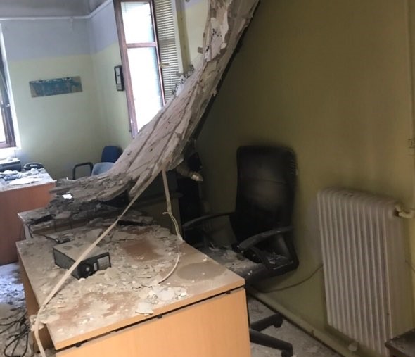 Ξαφνικά άρχισε να πέφτει σκόνη, κάτι που είχαμε βιώσει πολλές φορές στο παρελθόν όμως αυτή τη φορά και μέσα σε κλάσματα δευτερολέπτου έπεσε πολύ μεγάλο κομμάτι από το ταβάνι των γραφείων!