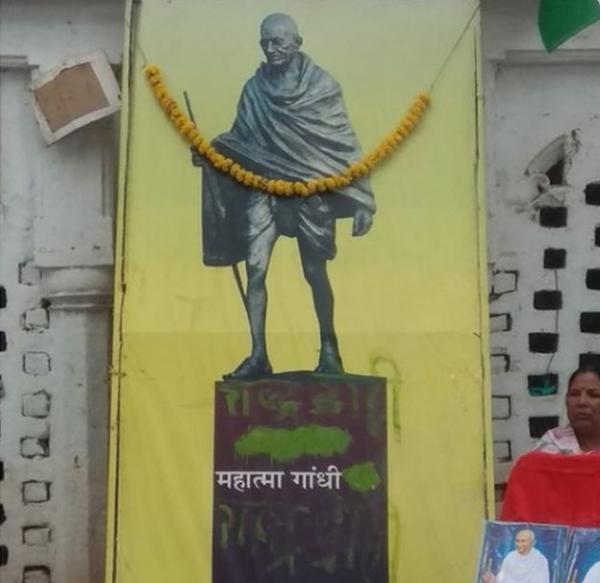Οι δράστες βεβήλωσαν επίσης το μνημείο με πράσινη μπογιά, γράφοντας τη λέξη «προδότης» πάνω σε φωτογραφίες του ηγέτη της ινδικής ανεξαρτησίας.