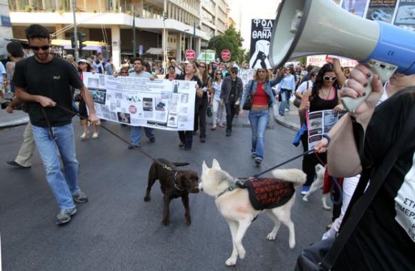 Πορεία για τα δικαιώματα των ζώων πραγματοποιήθηκε σήμερα στο κέντρο της Αθήνας, στο πλαίσιο της παγκόσμιας ημέρας των ζώων.