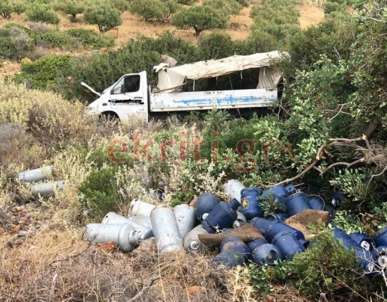 Κρήτη : Φορτηγό με φιάλες υγραερίου έπεσε σε γκρεμό