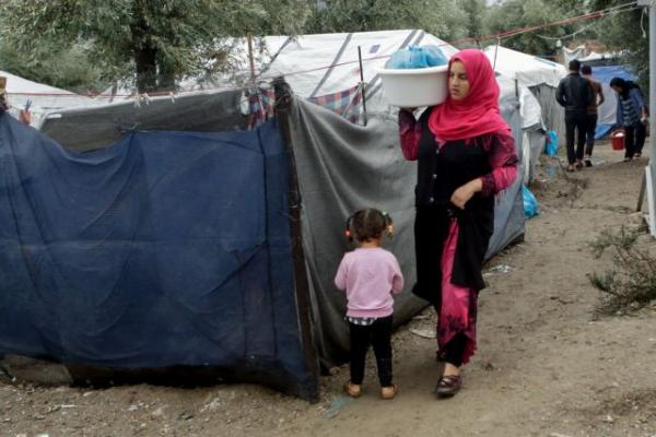 Οι πρόσφυγες έχουν σκεπάσει τα αντίσκηνά τους με πλαστικά προκειμένου να περιορίσουν το νερό που μουλιάζει τα πρόχειρα καταλύματα τους, ενώ την ίδια ώρα τα σκουπίδια στοιβάζονται δίπλα τους, δημιουργώντας ένα τριτοκοσμικό σκηνικό.