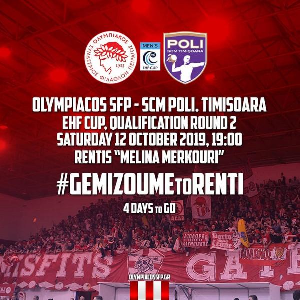 Ο Ολυμπιακός μετρά αντίστροφα για την αναμέτρηση κόντρα στην Τιμισοάρα στο πλαίσιο του δεύτερου προκριματικού γύρου του EHF Cup στο Χάντμπολ Ανδρών.