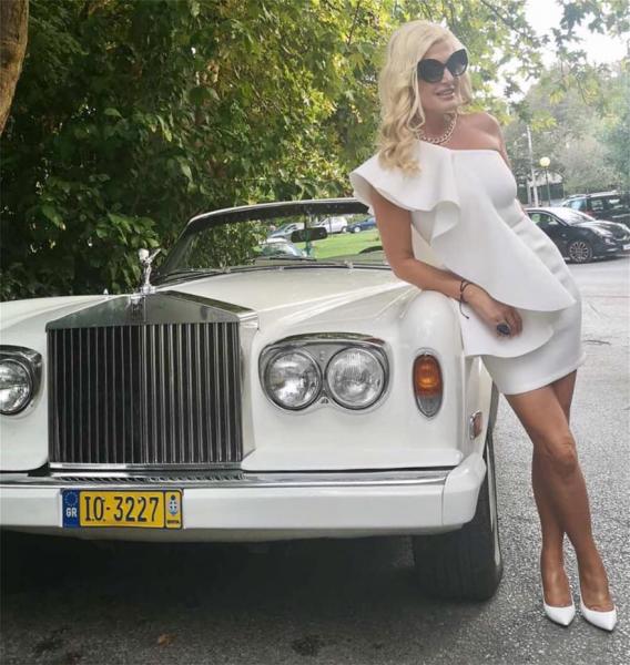 Η σύζυγος του περιφερειάρχη Αττικής, Γιώργου Πατούλη, πόζαρε μέσα στο πολυτελές αυτοκίνητο αλλά και δίπλα από αυτό φορώντας τα κατάλληλα ρούχα.