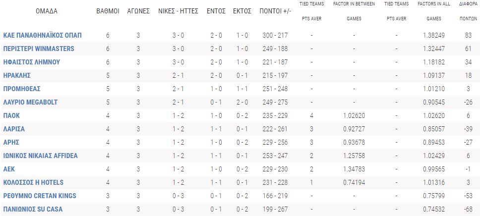 Δείτε τη βαθμολογία μετά από 3 αγωνιστικές: