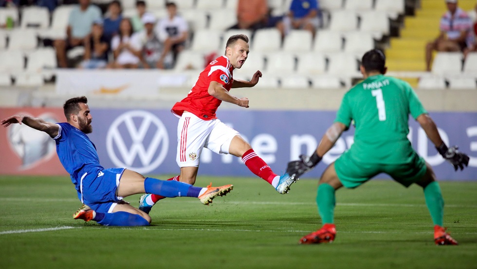 Η Ρωσία επικράτησε εύκολα της Κύπρου με 5-0 στο «ΓΣΠ» και με τη νίκη αυτή εξασφάλισε και τυπικά την πρόκρισή της στην τελική φάση του Euro 2020. Οι Ρώσοι ξεκίνησαν δυνατά το ματς και μέχρι το 23′ προηγούνταν με 2-0, χάρη στα γκολ των Τσερίσεφ και Οζντόεφ.