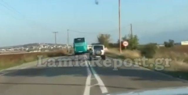 Η κάμερα του Lamia Report κατέγραψε τους ελιγμούς του οδηγού και την τρελή πορεία σε επαρχιακό δρόμο προς τη Λαμία.