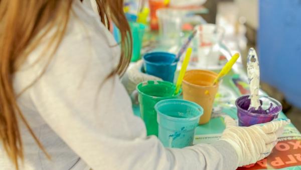 Στους μαθητές τους δίνονται χρώματα πινέλα γάντια και ποδιές για να ζωγραφίσουν είτε μέσα σε περιγράμματα που τους δημιουργούμε είτε με δικά τους σχέδια και την βοήθειά μας.