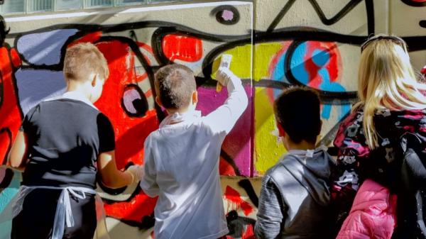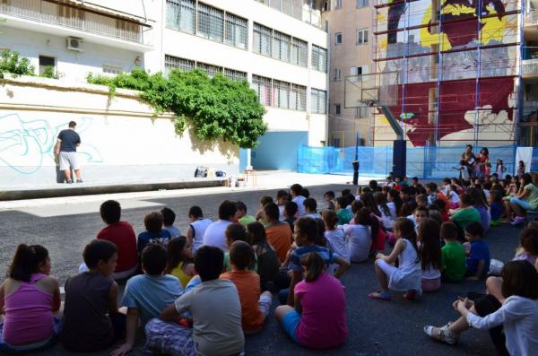 Το πρόγραμμα στα σχολεία περιλαμβάνει στην πιο πλήρη του μορφή, την υλοποίηση μιας μεγάλης τοιχογραφίας, σεμινάρια και συμμετοχικές δράσεις για τους μαθητές.