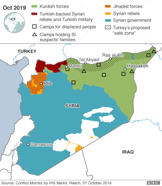 Οι στρατιωτικές δυνάμεις του Μπασάρ αλ Άσαντ αναπτύχθηκαν στην περιοχή, έπειτα από τη συμφωνία που ανακοίνωσαν οι Κούρδοι με τη Δαμασκό, προκειμένου να περιοριστεί η στρατιωτική επιχείρηση της Τουρκίας.