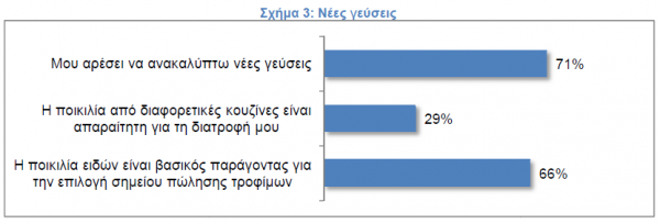 Η πολυπολιτισμικότητα, η πρόσβαση στο διαδίκτυο και οι δύο προηγούμενες τάσεις οδηγούν την επιθυμία του καταναλωτικού κοινού για νέες γεύσεις και ποικιλία διαφορετικών επιλογών. Το 71% του κοινού δηλώνει ότι του αρέσει να ανακαλύπτει καινούργιες γεύσεις (ποσοστό μεγαλύτερο από το 67% των ΗΠΑ), ενώ το 66% δηλώνει ότι η ποικιλία ειδών είναι βασικός παράγοντας για την επιλογή σημείου πώλησης. Ήδη σήμερα οι εταιρείες τροφίμων πειραματίζονται με νέους συνδυασμούς γεύσεων προσπαθώντας να καλύψουν αυτή την ανάγκη, ενώ και οι λιανεμπορικές επιχειρήσεις επεκτείνουν το κωδικολόγιο τους με νέες κατηγορίες και νέα προϊόντα.