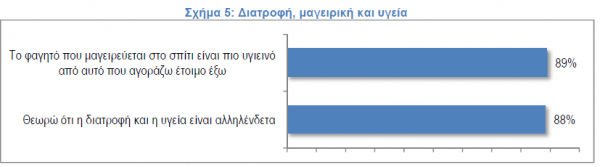Σε αντίθεση όμως με την προηγούμενη τάση, η πλειοψηφία των καταναλωτών (και ειδικά οι μεγαλύτερες ηλικίες) αναμένεται να αφιερώνουν όλο και περισσότερο χρόνο για τον σχεδιασμό-προγραμματισμό της διατροφή τους, ως αποτέλεσμα της αύξησης του επιπέδου εκπαίδευσης και του μέσου προσδόκιμου ζωής. Το κοινό θα θέλει να ζει πιο υγιές για όλο μεγαλύτερο χρόνο. Η υγεία όπως φαίνεται στο σχήμα 5 είναι αλληλένδετη με τη διατροφή (88%), ενώ η υγιεινή διατροφή είναι αλληλένδετη με τη μαγειρική (89%). Το κοινό θα ψάχνει πιο υγιεινές επιλογές για τη διατροφή του και οι επιχειρήσεις θα πρέπει να είναι προετοιμασμένες να απαντήσουν σε αυτή την ανάγκη, καθώς το τι είναι υγιεινό σε ένα μεγάλο βαθμό θα είναι ασαφές για μεγάλες ομάδες του αγοραστικού κοινού.