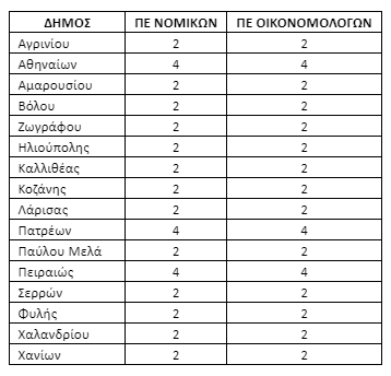 Αναλυτικά οι θέσεις ανά Δήμο και ειδικότητα: